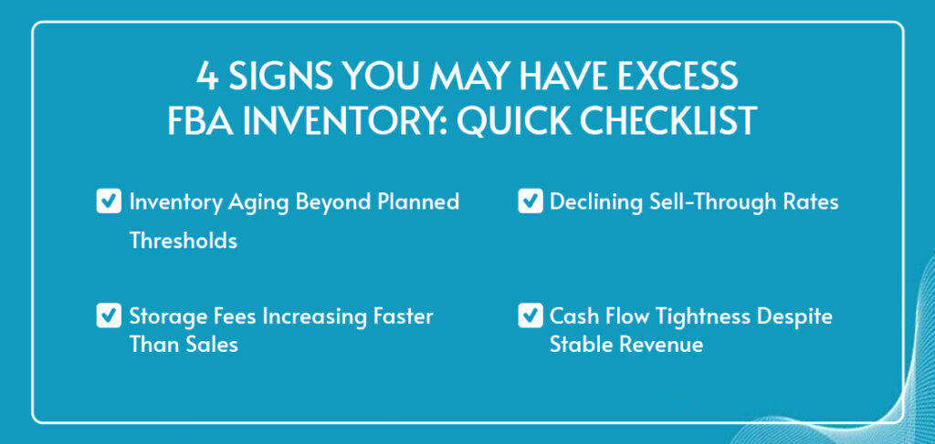Excess FBA inventory does not always create immediate problems, which is why it can be difficult to identify early. In many cases, the warning signs appear gradually through inventory and cost metrics that sellers may already be tracking.