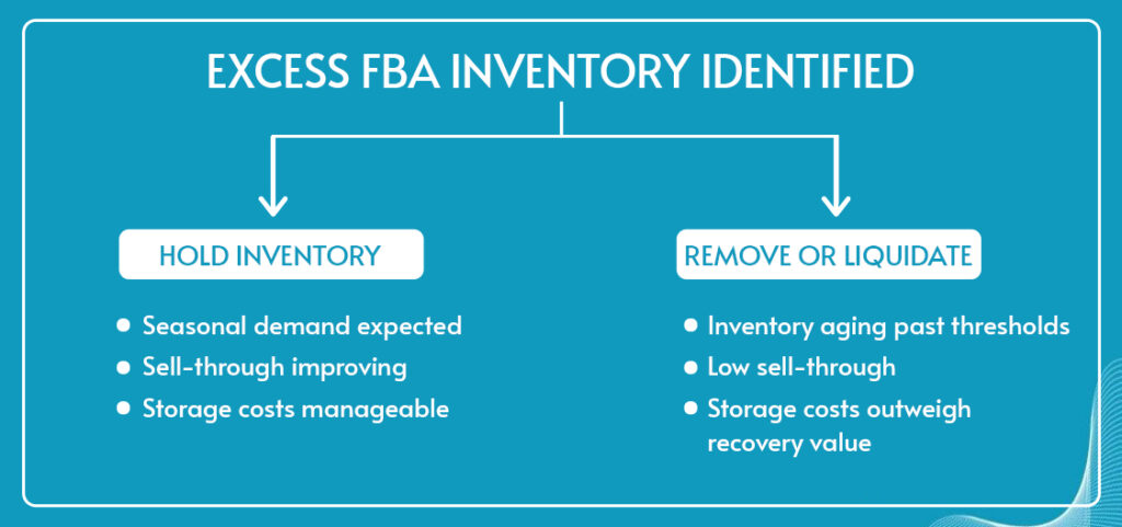 Once inventory is already sitting in FBA, sellers have several options. The right approach depends on demand outlook, storage costs, and the financial impact of holding inventory over time. Evaluating these factors helps determine whether inventory should be held, removed, or liquidated.