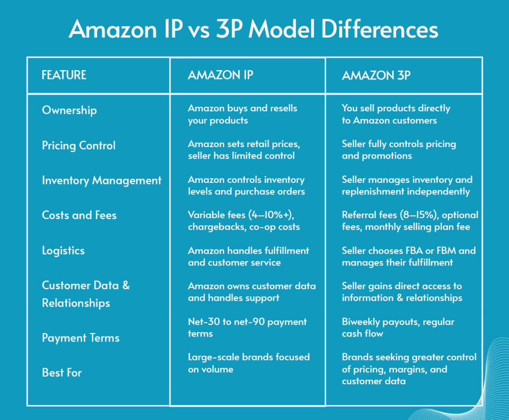 Moving from Amazon’s first-party (1P) vendor model to a third-party (3P) seller model is a major strategic decision for brands. In the 1P model, brands sell wholesale to Amazon through Vendor Central, while in the 3P model, they sell directly to customers through Seller Central. This shift gives brands more control over pricing, inventory, listings, and profitability, but also requires greater operational responsibility.